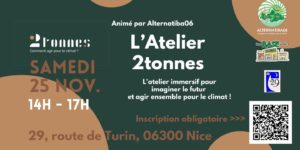 Atelier 2 tonnes samedi 25 novembre de 14h à 17h à “Une BASE à Nice” Afin de limiter les effets du changement climatique, nous devons réduire nos émissions de gaz …