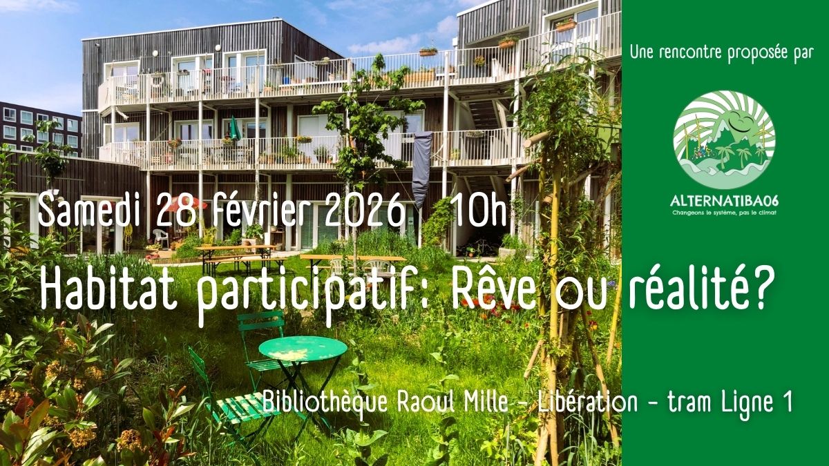 Rencontre avec le collectif pour l’habitat participatif maralpin Rendez-vous sous l’olivier et Maïoun HaPaNI (Maison pour un Habitat Participatif à Nice), le Samedi 28 février à 10h, à la Bibliothèque Raoul Mille, 33, avenue Malaussena, 06000 Nice.